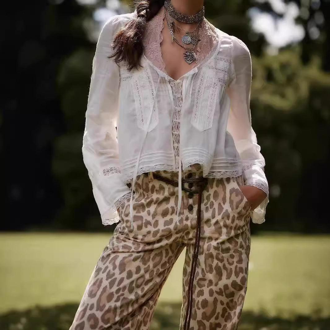 Lace U-shaped Lace Collar Long Sleeve Light Shirt